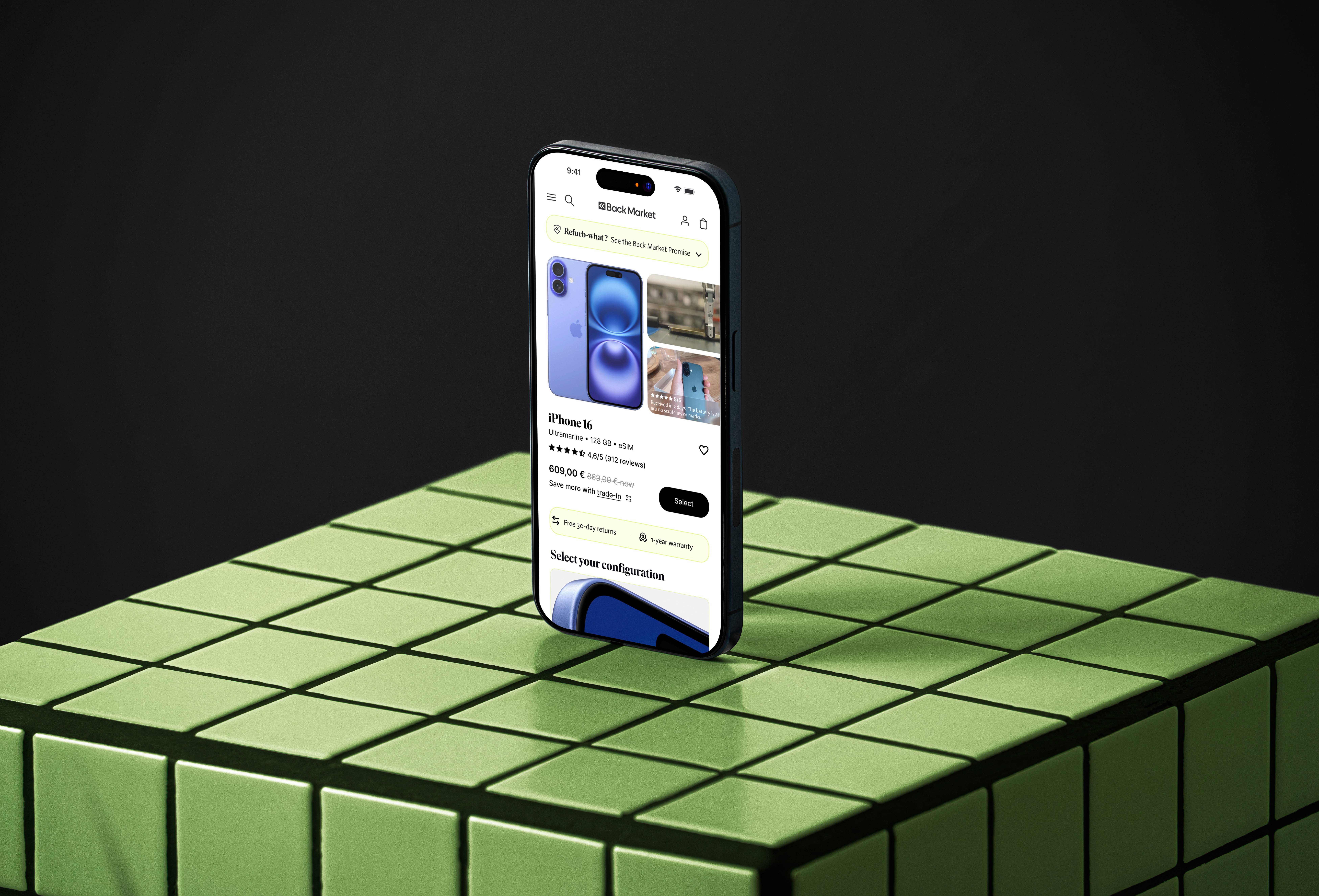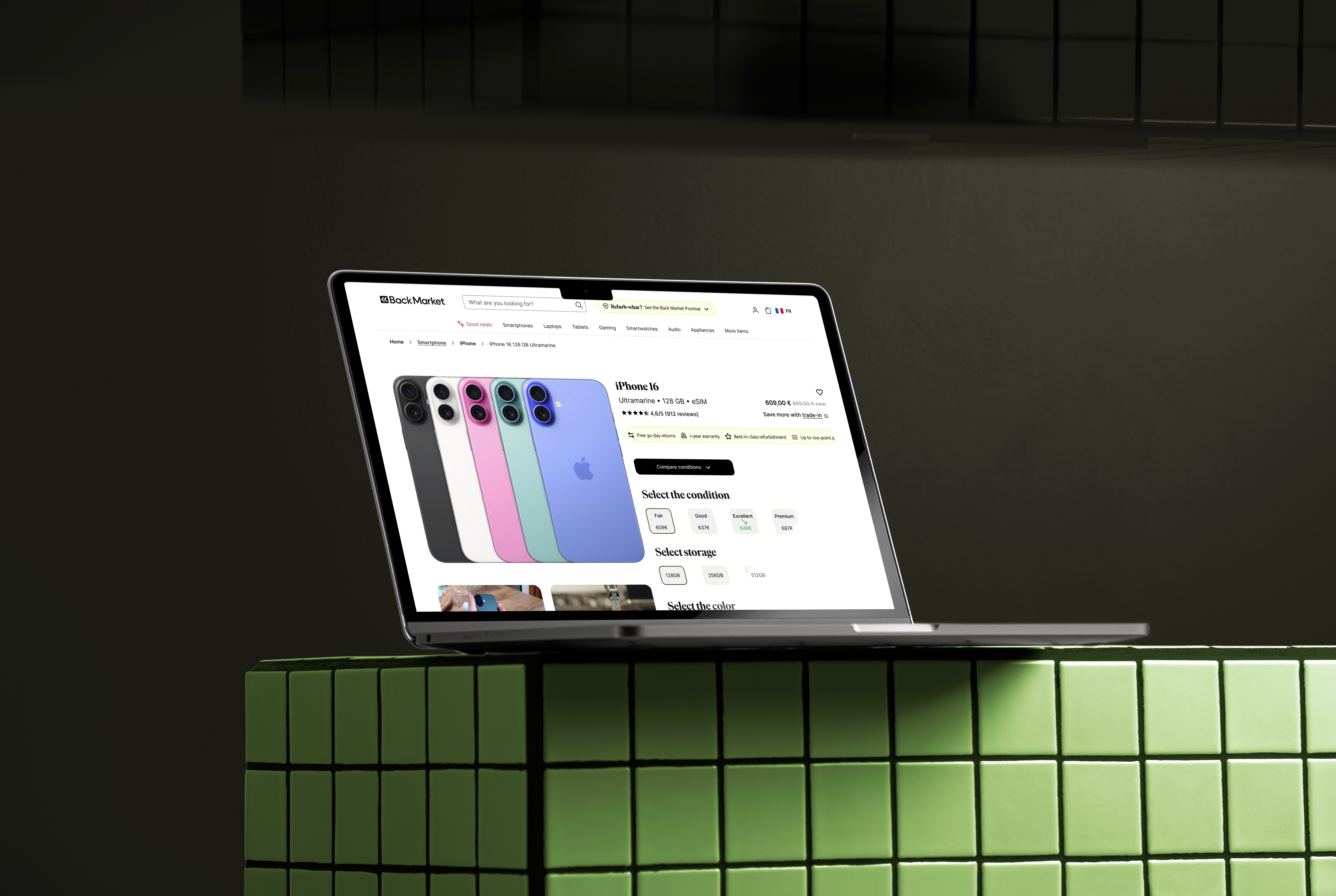 Over a two-week solo project with Back Market during my Ironhack bootcamp, I redesigned the PDP end to end: research, strategy, information architecture, UX, UI, and design system. I focused the experience on clearly addressing first-time refurbished concerns and structuring key reassurance signals for both humans and AI. This included surfacing warranty and trust content in a way that reduces hesitation for users, while also improving how LLMs can read and recommend Back Market as the smart choice