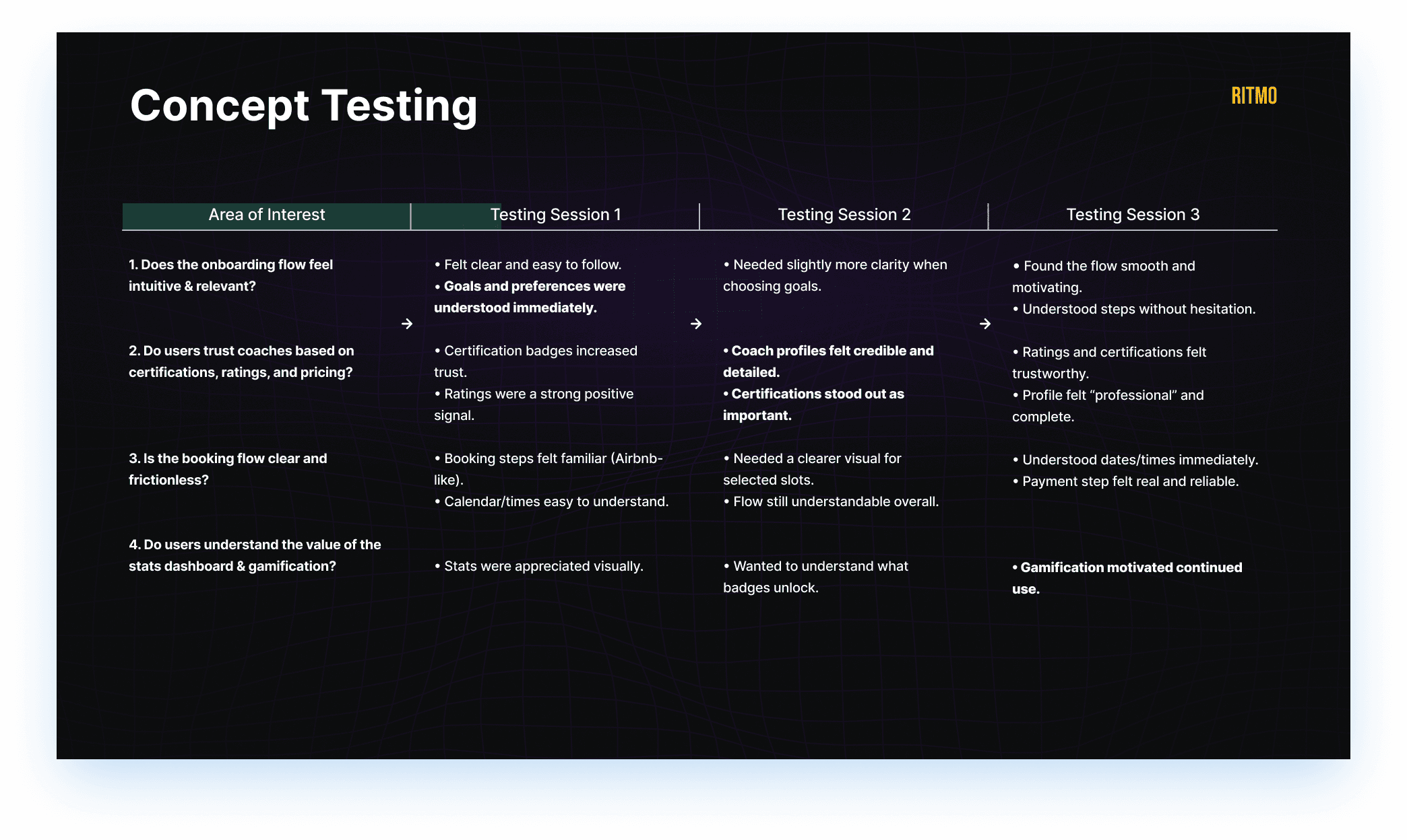 I conducted surveys with fitness enthusiasts and identified three core concerns: Coach Quality, Lack of personalization, and Price vs Results.
